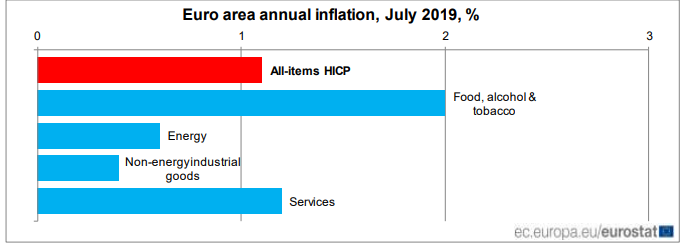 The FINANCIAL — Euro area annual inflation is expected to be 1.1% in July 2019, down from 1.3% in June according to a flash estimate from Eurostat, the statistical office of the European Union.
