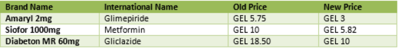 Prices within different pharmacy networks have been halved only for three medications: Metformin, Gliclazide and Glimpiride (brand name: Siofor, Diabeton, Amaryl). These medications are frequently used for treating type II diabetes mellitus. However, these aforementioned medications are not overly expensive. In addition, they are already provided to vulnerable groups which are covered by the state programme.