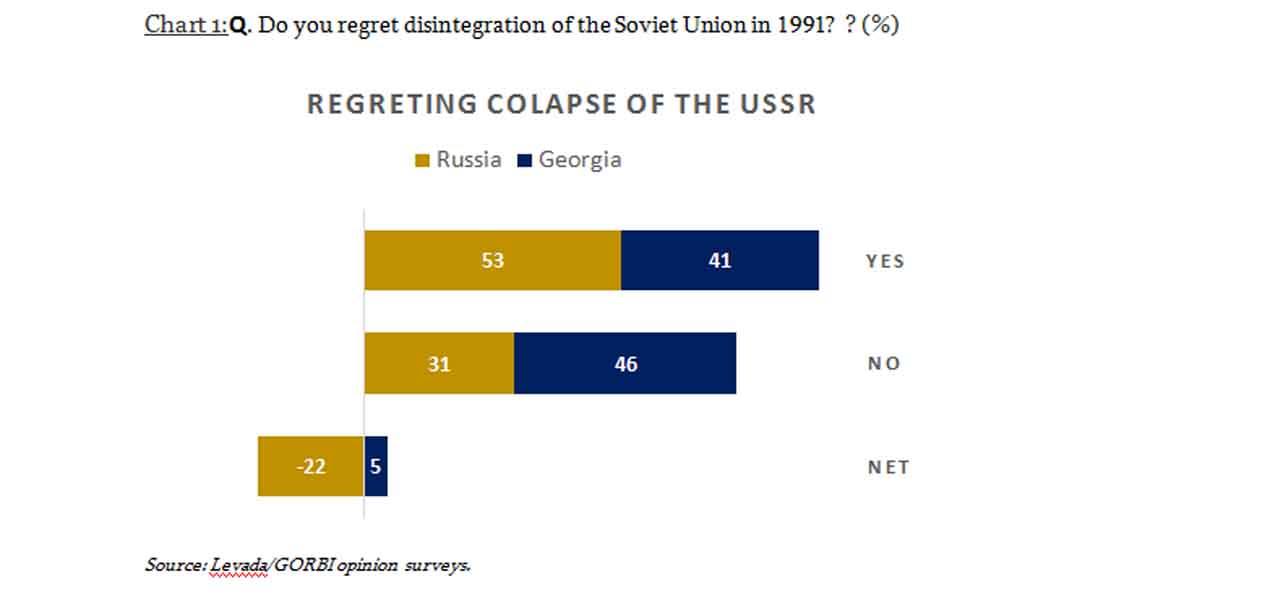 One interesting moment is also found thanks to this research: if we judge by net rating (not regretting collapse – regretting) Russians are significantly more concerned than Georgians about the “failure” of the Soviet Union, -22% vs +5% respectively.