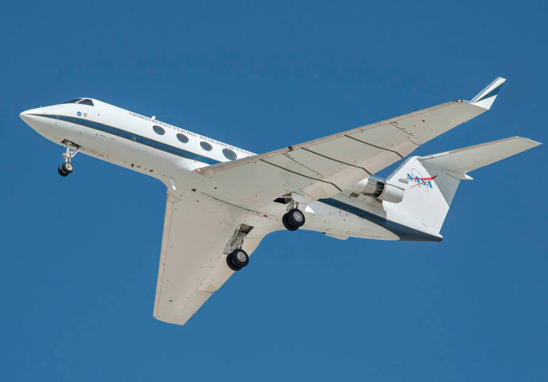 NASA tested several experimental designs on various airframe components of a Gulfstream III research aircraft at Armstrong, including landing gear fairings and cavity treatments designed and developed at Langley, as well as the Adaptive Compliant Trailing Edge (ACTE) wing flap, which had previously been flight-tested to study aerodynamic efficiency. The aircraft flew at an altitude of 350 feet, over an 185-sensor microphone array deployed on the Rogers Dry Lake at Edwards Air Force Base in California.