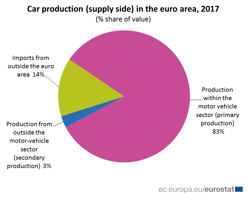 Of the €700 billion worth of cars produced in 2017 in the euro area, 14 % was imported from outside